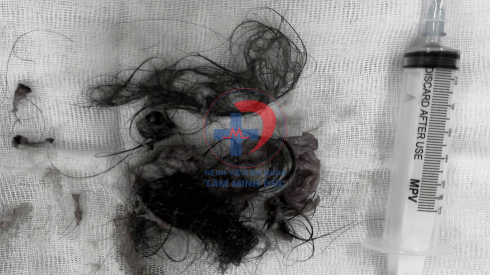 Bệnh viện Đa khoa Tâm Minh Đức vừa tiếp nhận bệnh nhân nữ 25 tuổi, nhập viện vì đau bụng kéo dài. Kết quả siêu âm cho thấy khối u buồng trứng phải dạng u quái (Teratoma), kích thước khoảng 8cm. Đặc biệt, bên trong khối u chứa toàn tóc – một hiện tượng điển hình của loại u này.
