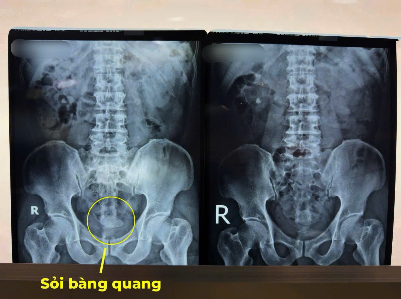 Qua thăm khám lâm sàng kết hợp siêu âm và X-quang, bác sĩ xác định bệnh nhân có sỏi bàng quang.